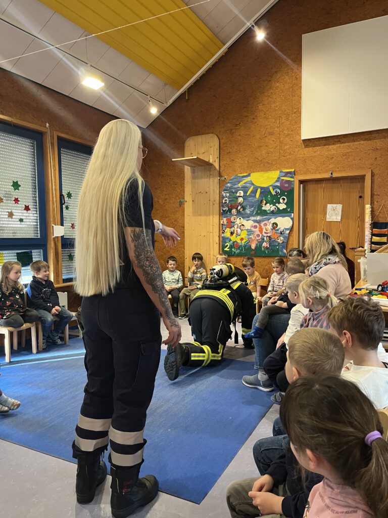 Am 16.12.2025 stand die Brandschutzerziehung auf unserem Dienstplan. Dazu ging es in unseren ortsansässigen Kindergarten. Dort haben wir den Kindern den Umgang mit dem Feuer und den Notruf nähergebracht. Damit die Kinder ein Bild von den im Einsatz tätigen Atemschutzgeräteträgern haben, hat sich ein Kamerad die Einsatzkleidung angezogen und vorgeführt, wie er im Einsatz aussieht.